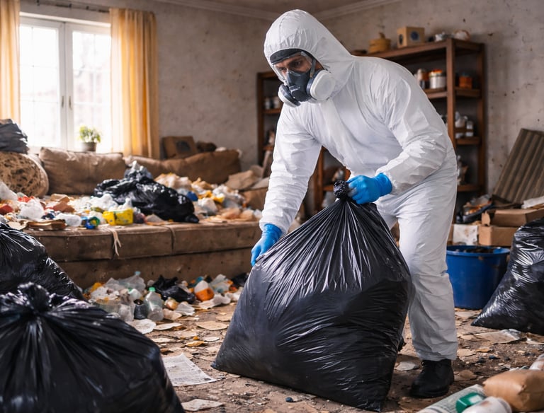 Compassionate cleanup for hoarding situations. We help restore safe and livable environments by removing clutter, sanitizing surfaces, and addressing biohazards that may be present.